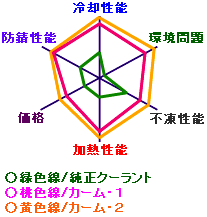 比重、比熱、表面張力に優れて密度の低いプロピレンは放熱性が良いために高温でも安定した冷却を行い、キャビテーション(衝撃圧)を起こし難くオーバーヒートを防止します。