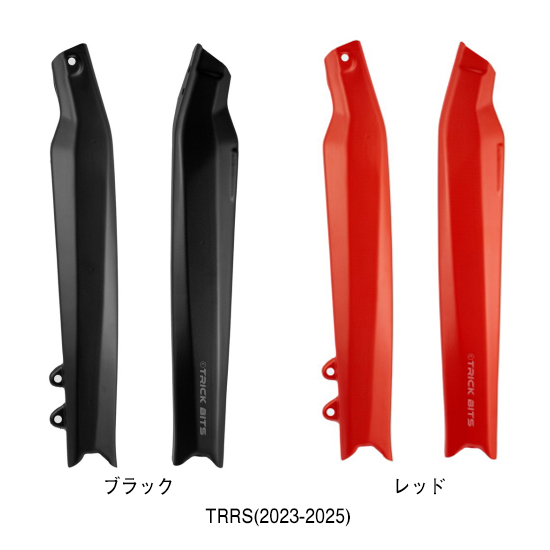 TRICK BITS ロングFフォーク カバー 8,500円(税込)(税抜7,728円) ※ロゴは入っていません。 対応車種: ・汎用Type(SHOWA/TECH 38MM/39MM) ・TECH専用Type