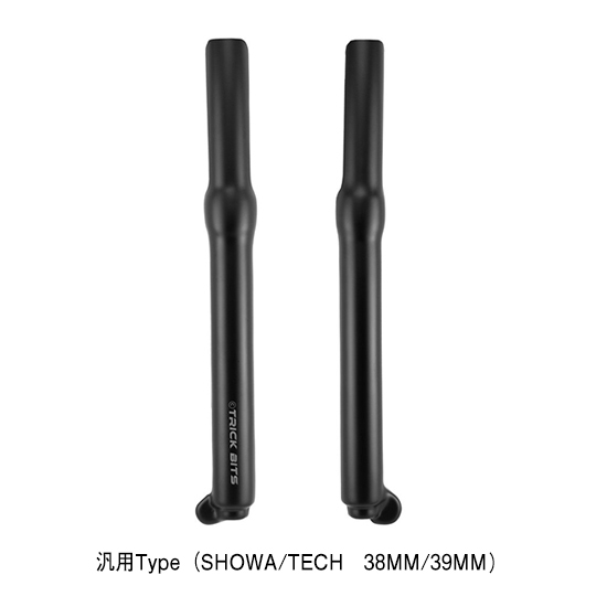 TRICK BITS ロングFフォーク カバー 8,500円(税込)(税抜7,728円) ※ロゴは入っていません。 対応車種: ・汎用Type(SHOWA/TECH 38MM/39MM) ・TECH専用Type